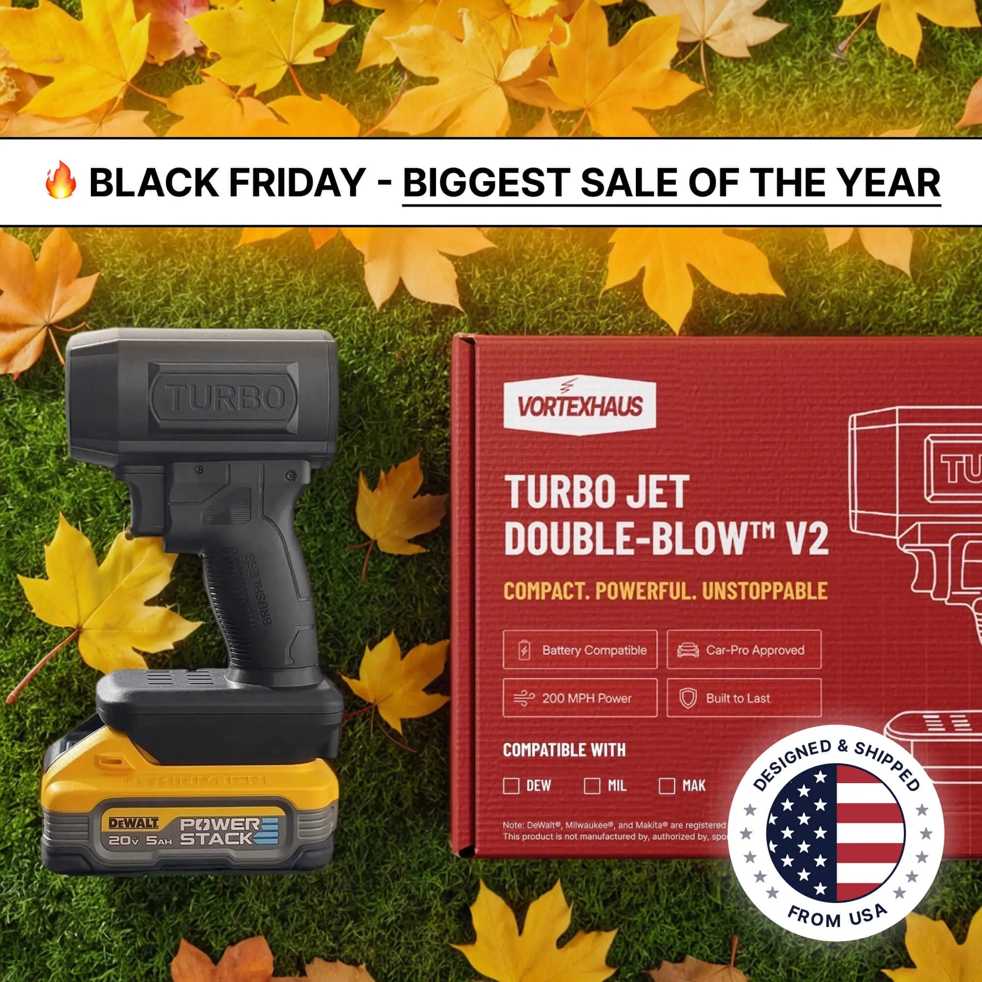 - Featuring VortexHaus Sync™ — the one-and-only system instantly compatible with your DeWalt, Makita, or Milwaukee 18–21V packs. No new batteries. No chargers. Just pure pro-grade power.
